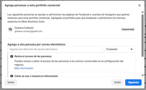 En este paso puedes agregar personas a tu portfolio comercial. Recuerda que el portfolio trata información sensible, si no deseas agregarlos en este punto podrás realizarlo luego presionando "omitir".