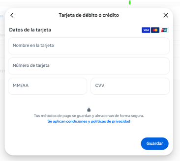 - Agrega tu tarjeta de crédito o débito internacional. Y presiona "Guardar".
